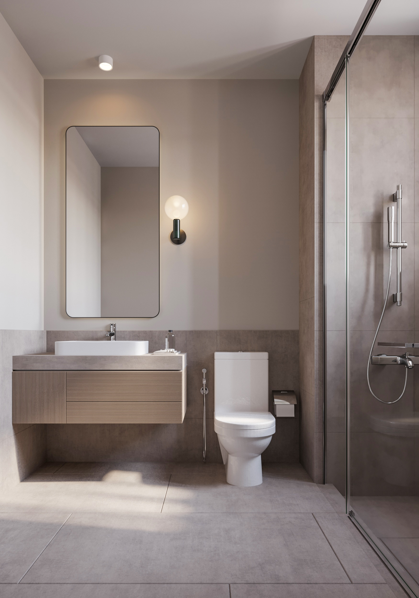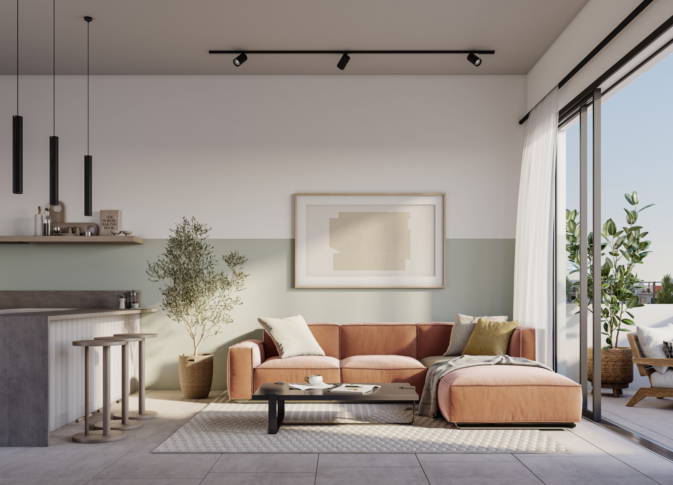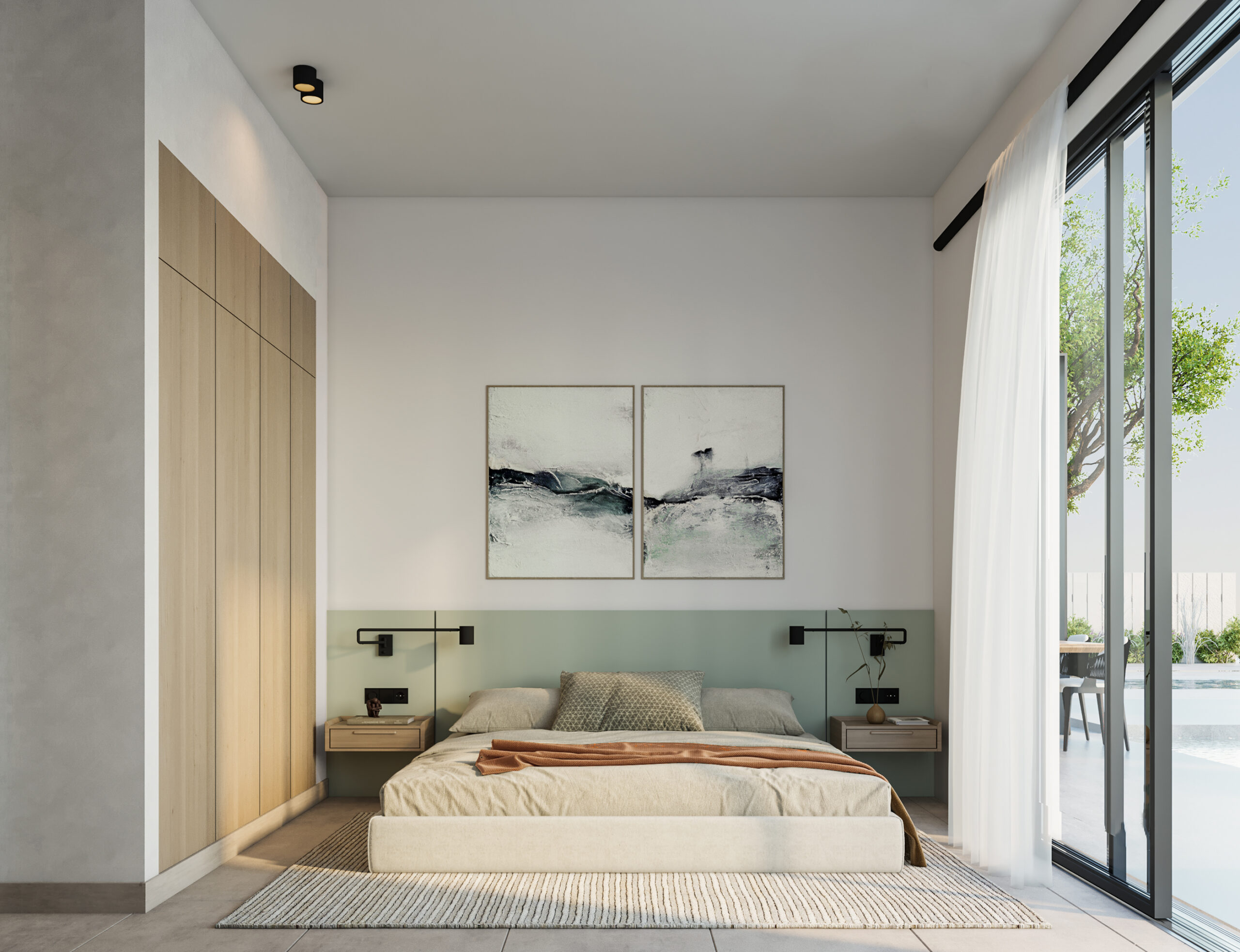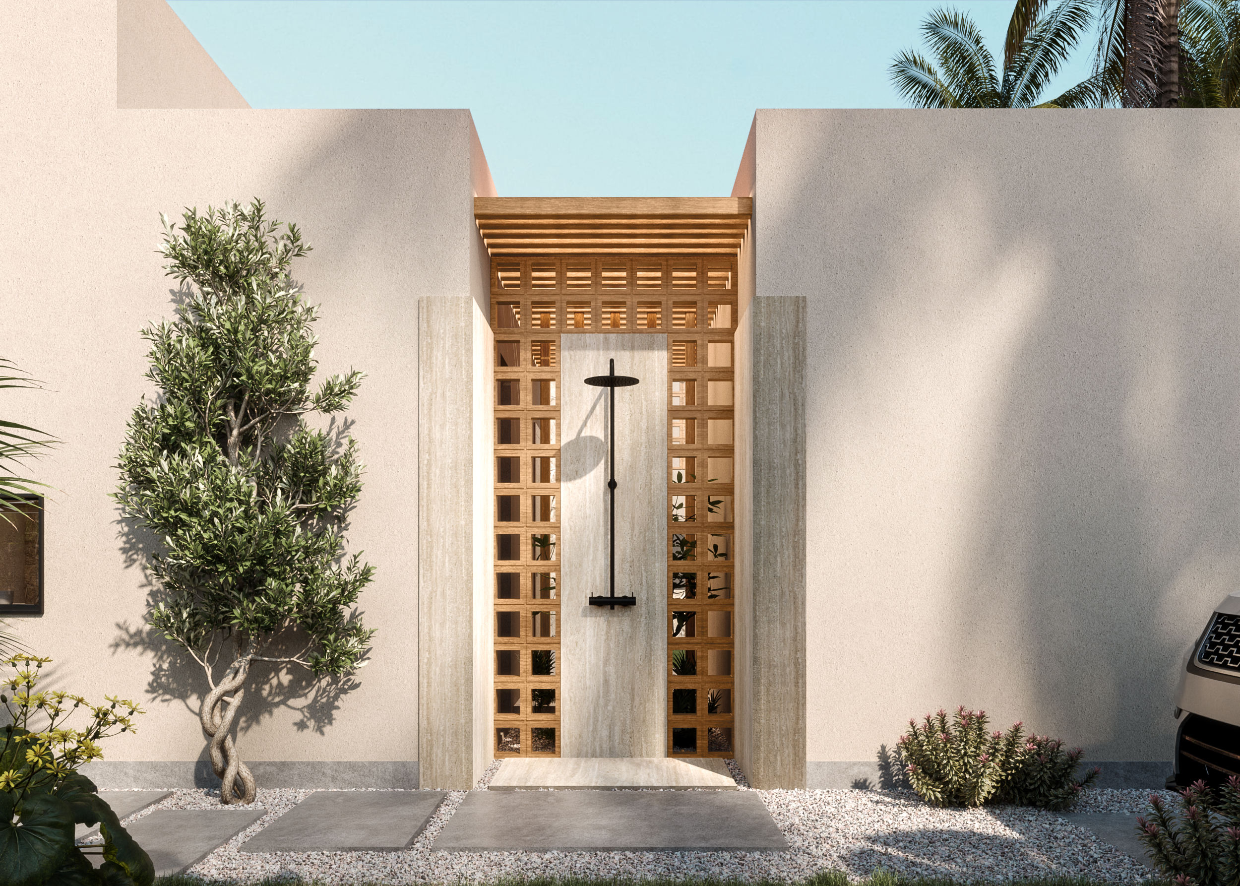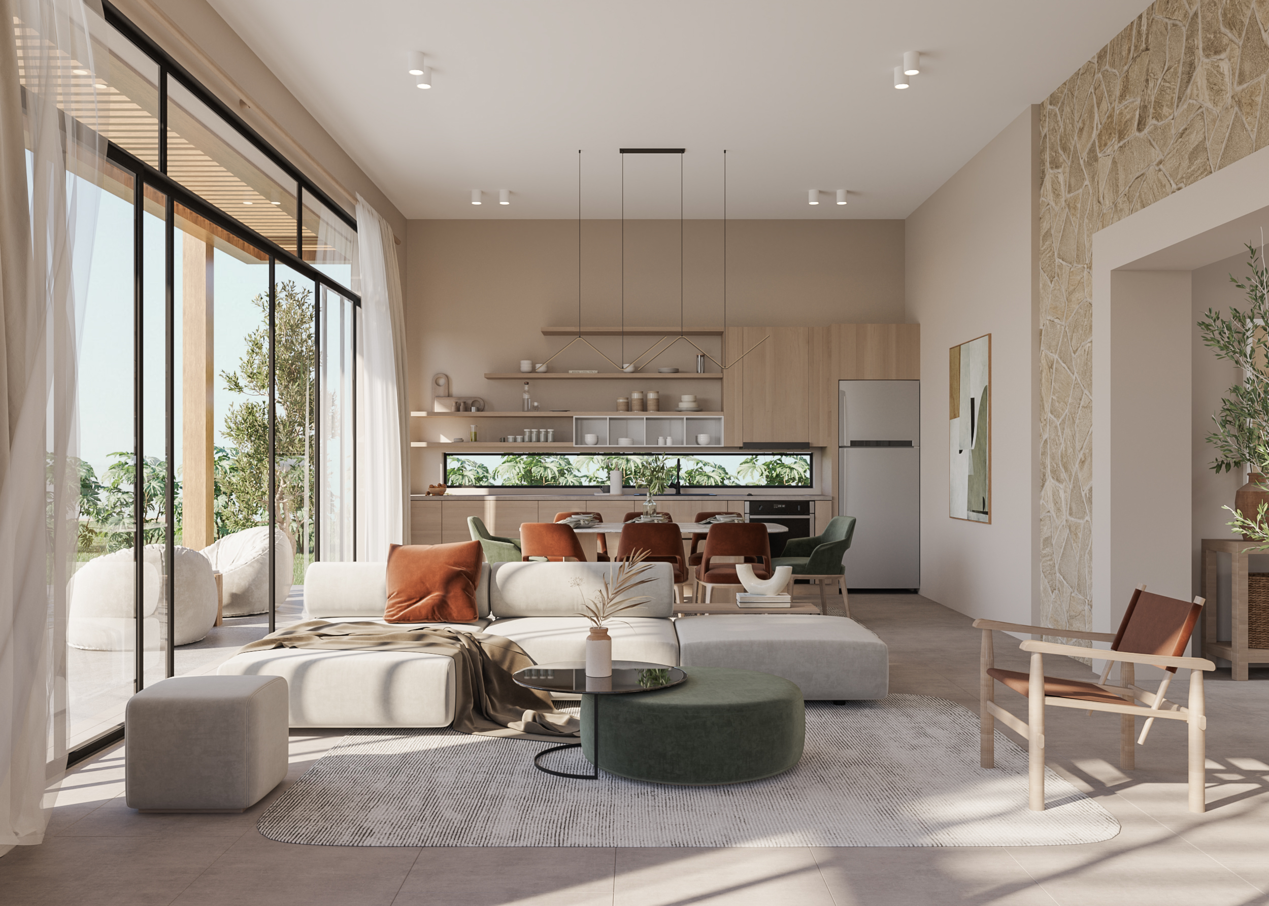 Ledge Flare provides a nice and wide view for the main spaces of the houses. In addition, the outdoor side courtyards and covered outdoor living spaces emphasize on blurring the boundary between in and outdoor areas. The target is to introduce a livable land boundary not a livable house boundary. There is an interplay with natural light by controlling its indirect access to each room. The spaces created between the volumes create a contrast between light and shadow throughout the building.