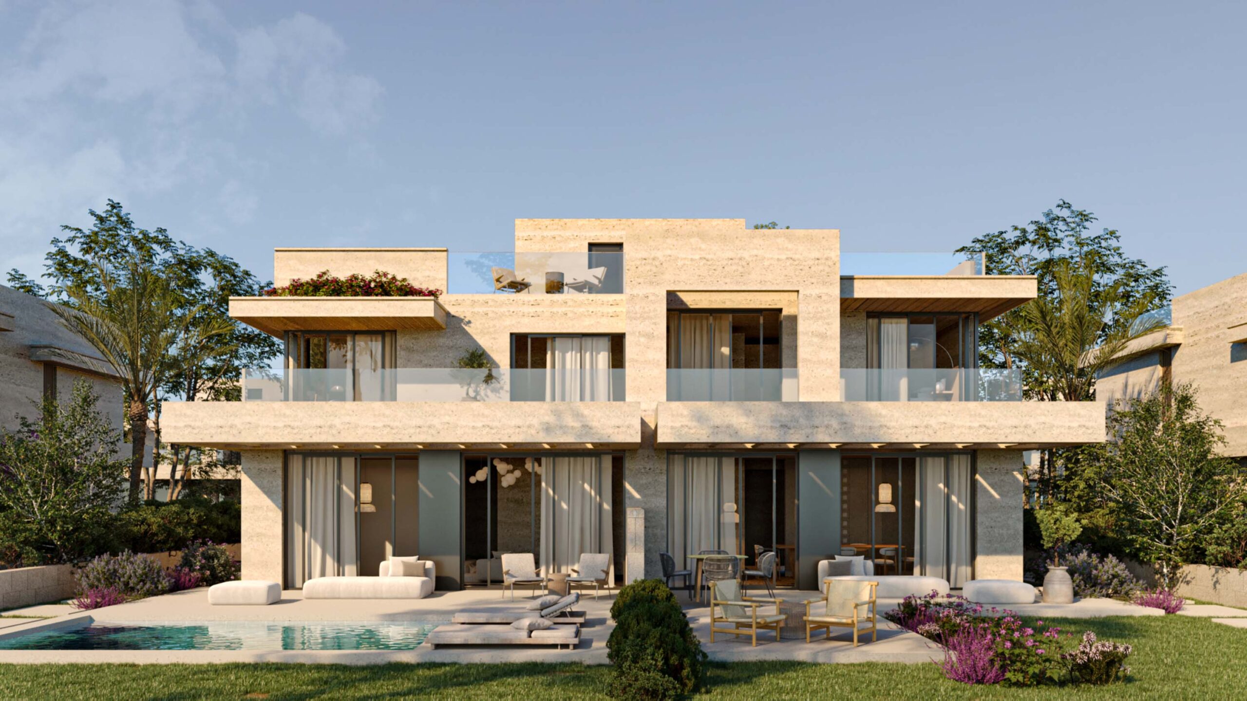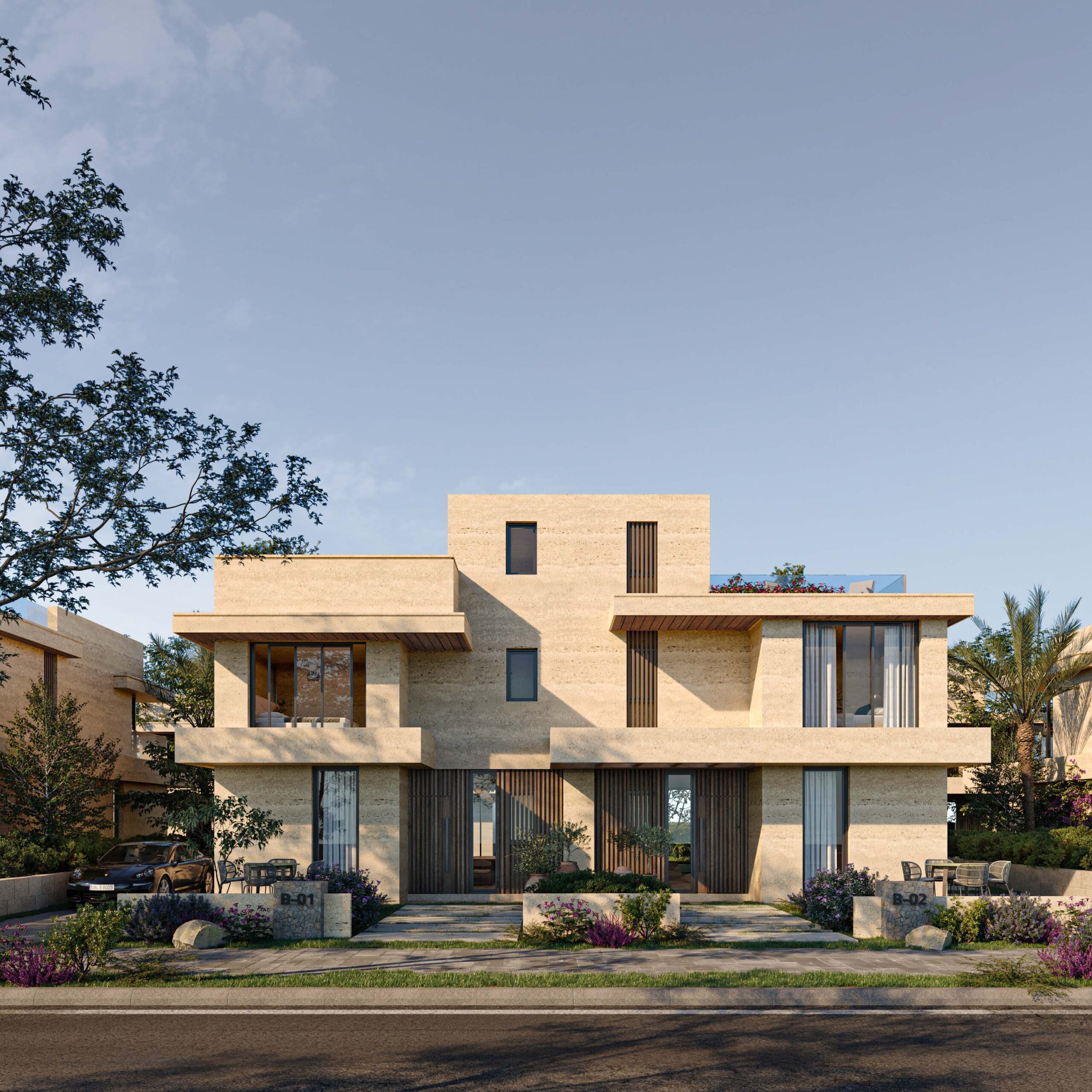 Embracing the site’s natural topography, this mixed-use and residential compound transforms its slopes into opportunities for design innovation. Residences step gracefully along the terrain, maximizing views, privacy, and natural cooling.